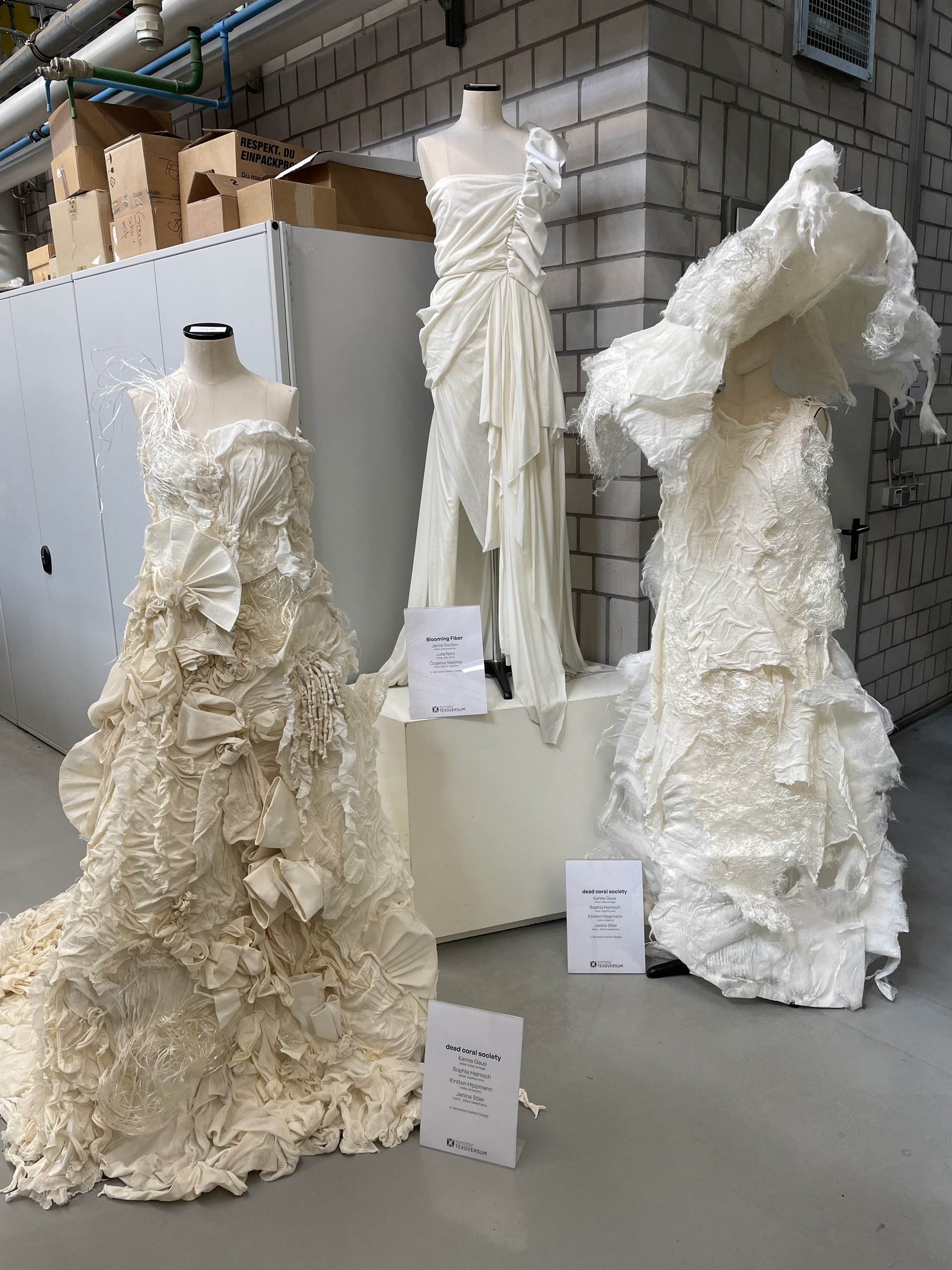 Das gelang besonders gut in den aufwändig organisierten Ausstellungen der vier Studiengänge: Im XR-Labor und Think Tank zeigten Studierende von Transportation Interior Design ihre Projektarbeiten und erklärten an Skizzen, Modellen und Videos, welche Fähigkeiten sie hier erlernen, um die Mobilität von Morgen mitzugestalten. Im Nählabor waren fasertastische Modekollektionen an Puppen drappiert, die das beeindruckende Können der Fashion and Textile DesignerInnen zeigten. Im KLiCKLAB erfuhr man anhand der ausgestellten Funktionsmuster smarter Textilien, die in Semesterprojekten im Textilen Ingenieurwesen entstehen, dass Textil wahrlich eine Zukunftstechnologie ist. Und wie im Studiengang International Fashion Retail internationale Betriebswirtschaftlehre auf Fashion trifft, erlebten die Gäste im Shop und Café des Forschungsprojekts „RU Enterprises“, das viele zum Verweilen einlud.