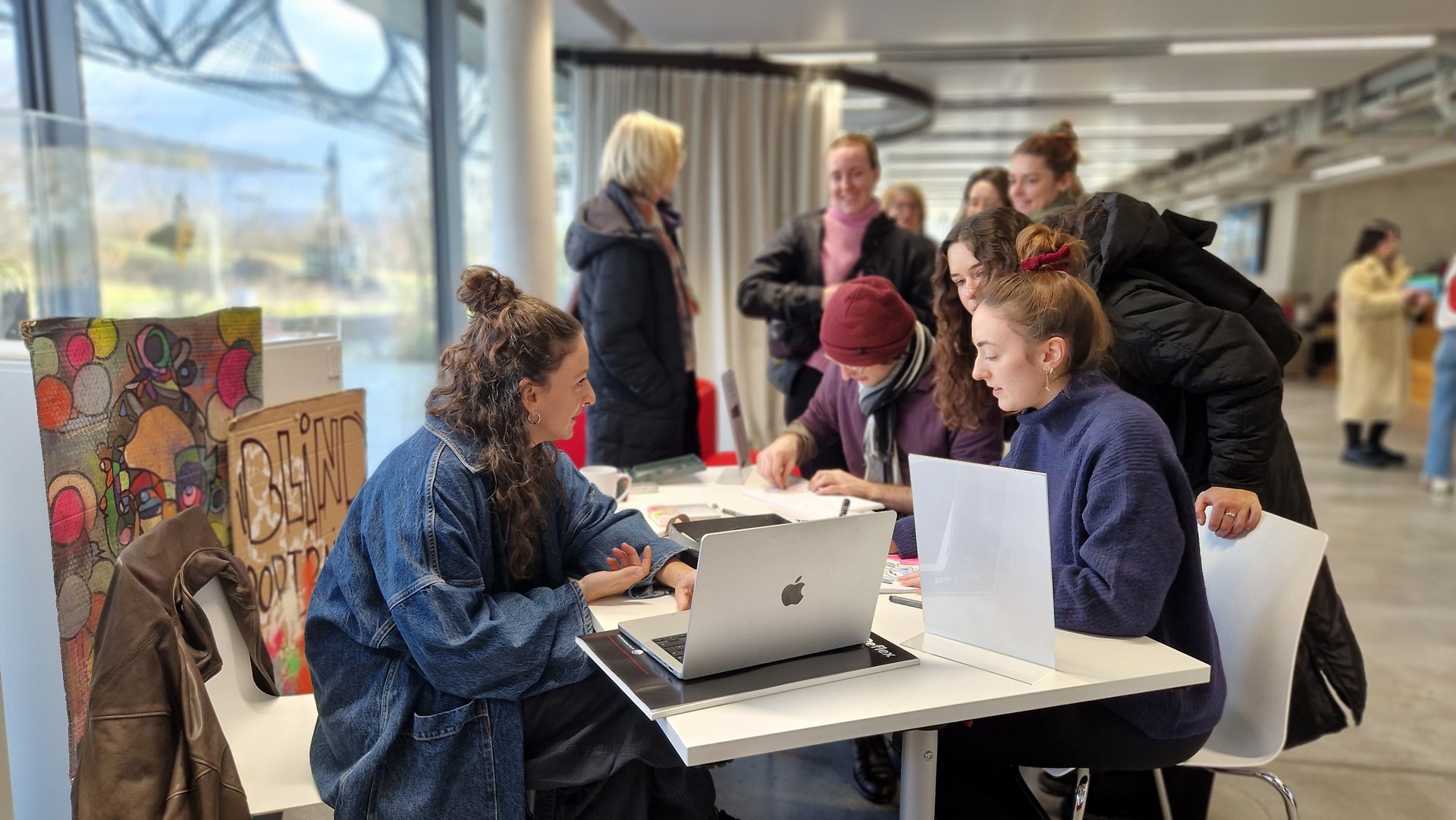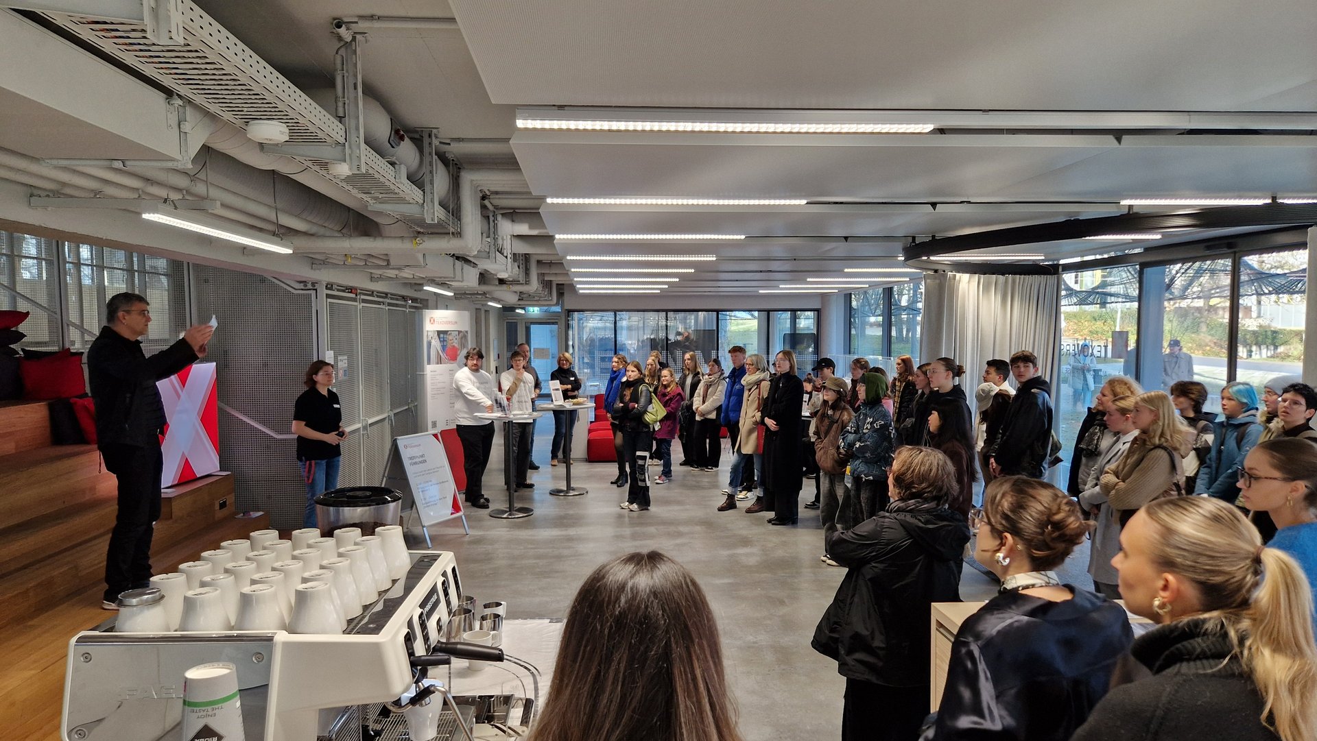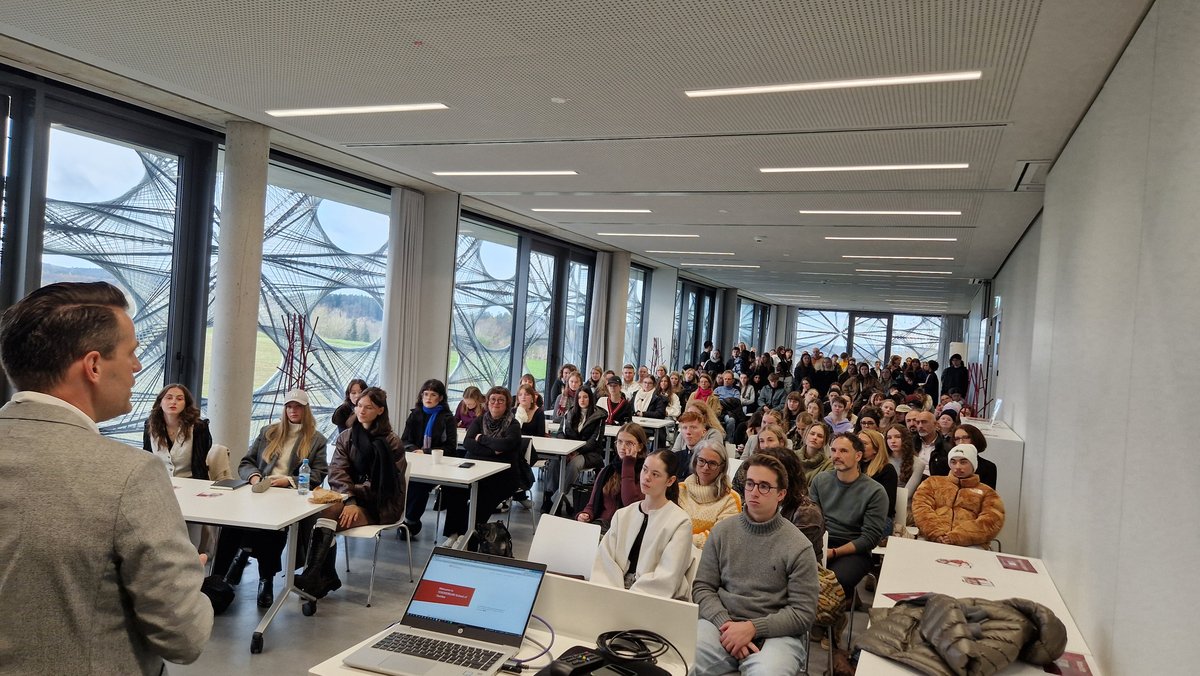 Im Foyer des Gebäudes standen Ansprechpersonen für persönliche Gespräche bereit. Aktuell Studierende berichteten aus erster Hand über ihren Studienalltag. Einige Schülerinnen und Schüler hatten bereits klare Vorstellungen über ihre Studienwahl und stellten konkrete Fragen zum Ablauf des Studiums. Andere nutzten den Tag für die persönliche Orientierung und um erste Eindrücke zu sammeln.