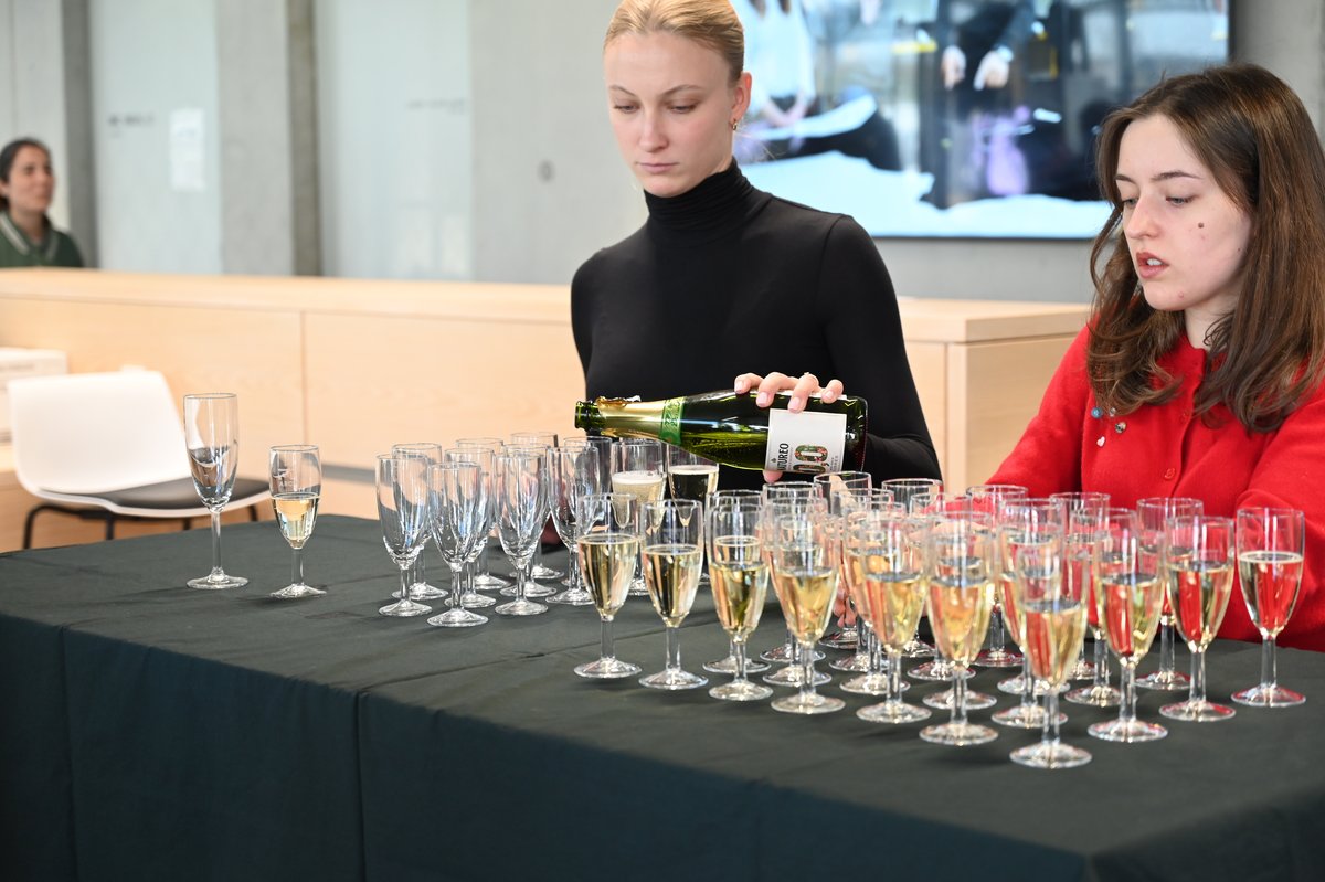 Nach der Zeugnisübergabe nutzten die Absolventinnen und Absolventen die Gelegenheit, mit einem Glas Sekt auf ihre Erfolge anzustoßen und Erinnerungsfotos zu machen.