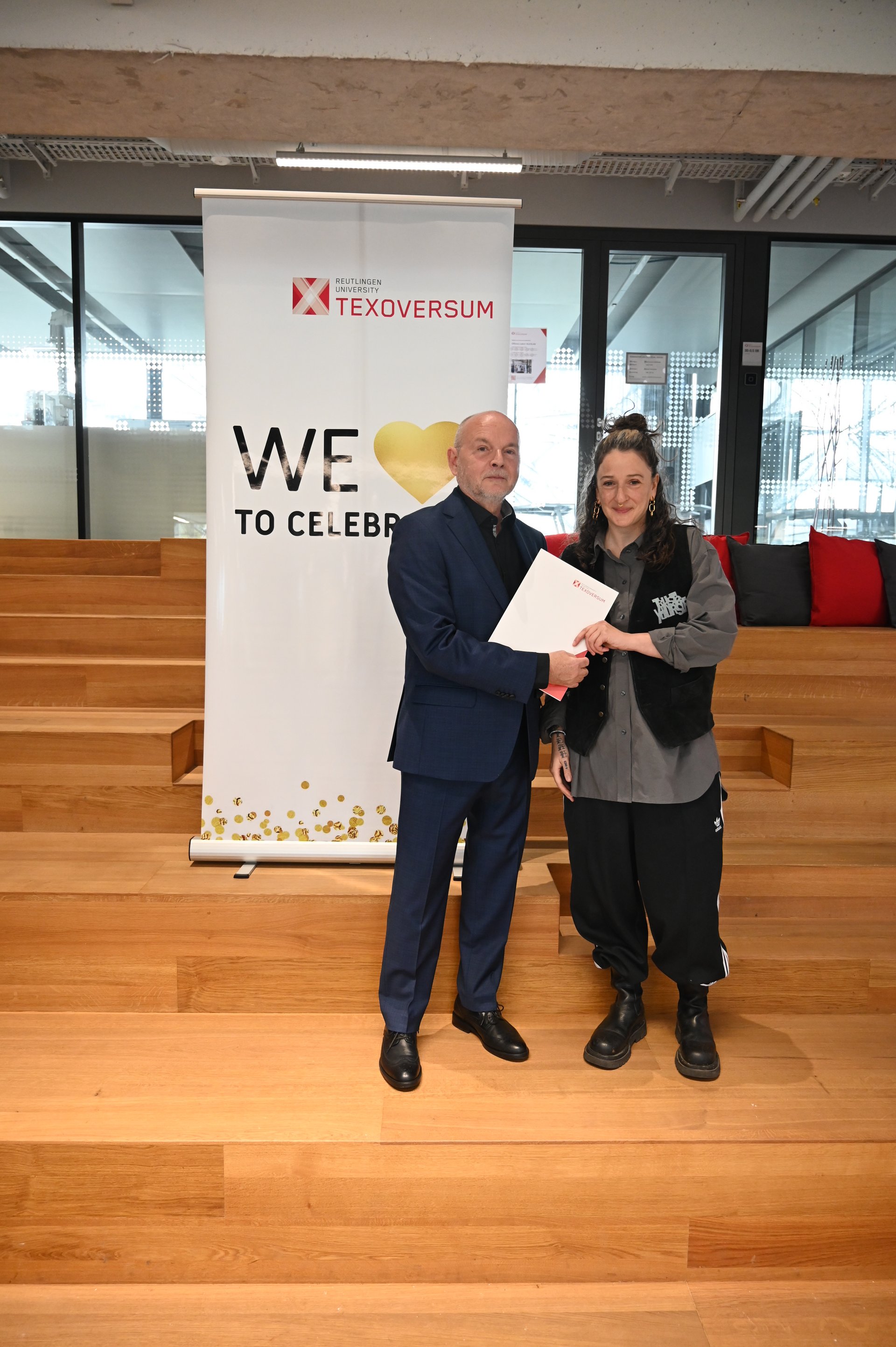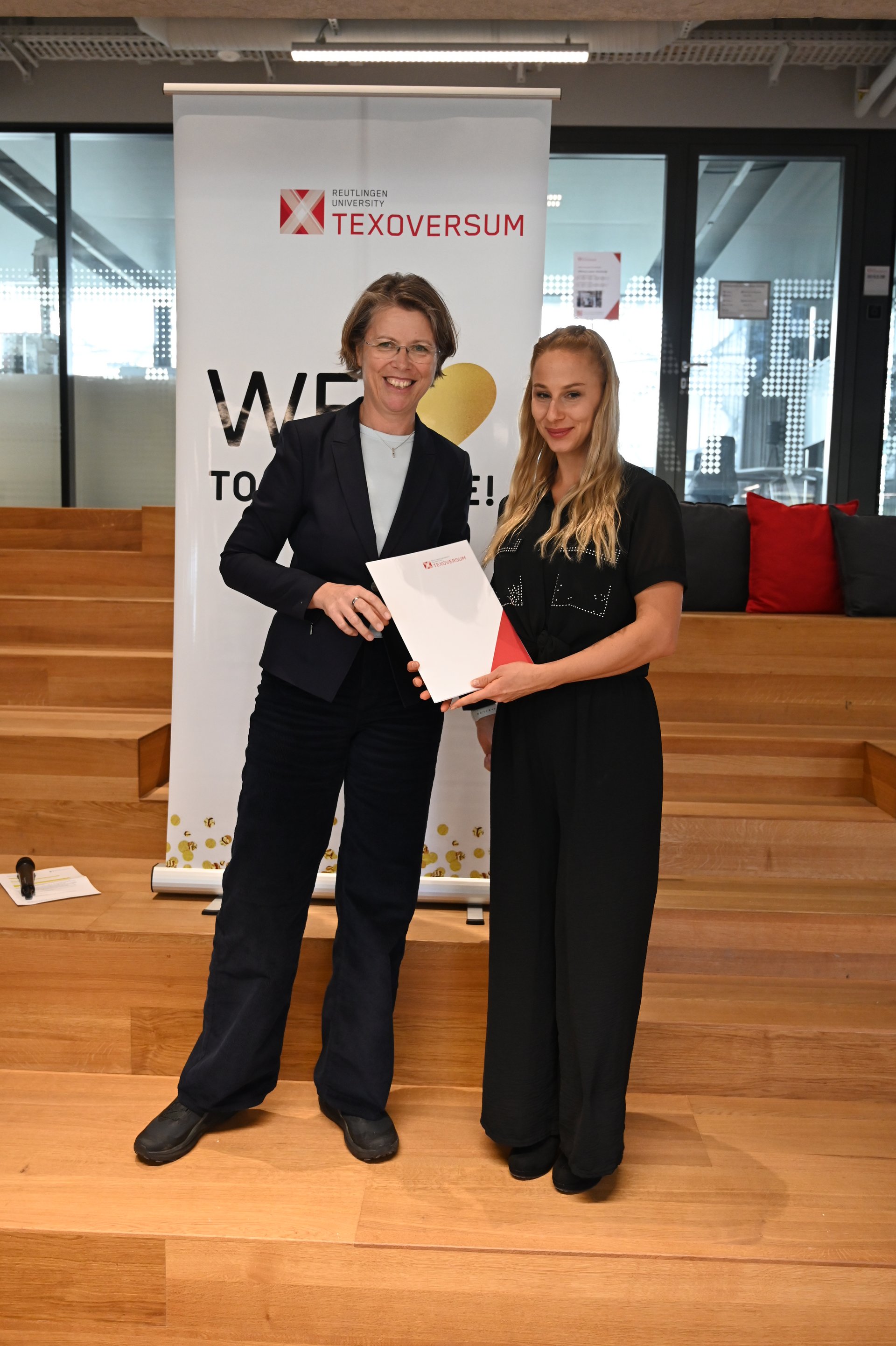 - Mara Kettnacker, Masterstudiengang Textile Chain Research, erhielt den DGOR-Nachhaltigkeitspreis für ihre wegweisende Arbeit „Vergleich der Materialeigenschaften eines bioabbaubaren Polyesters mit konventionellem Polyethylenterephthalat hinsichtlich textiltechnologischer Anforderungen, Belastbarkeit und Recyclingfähigkeit“.