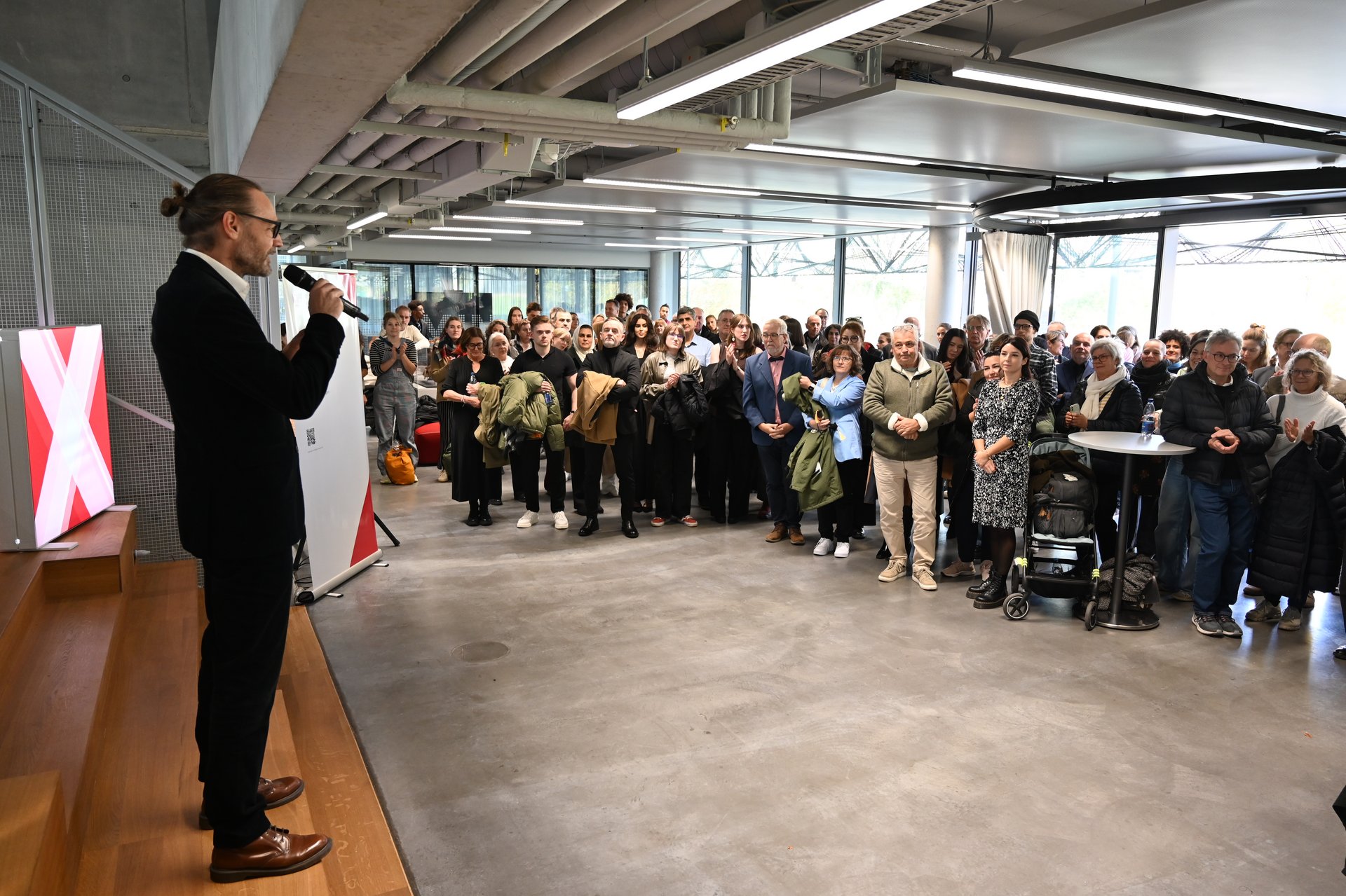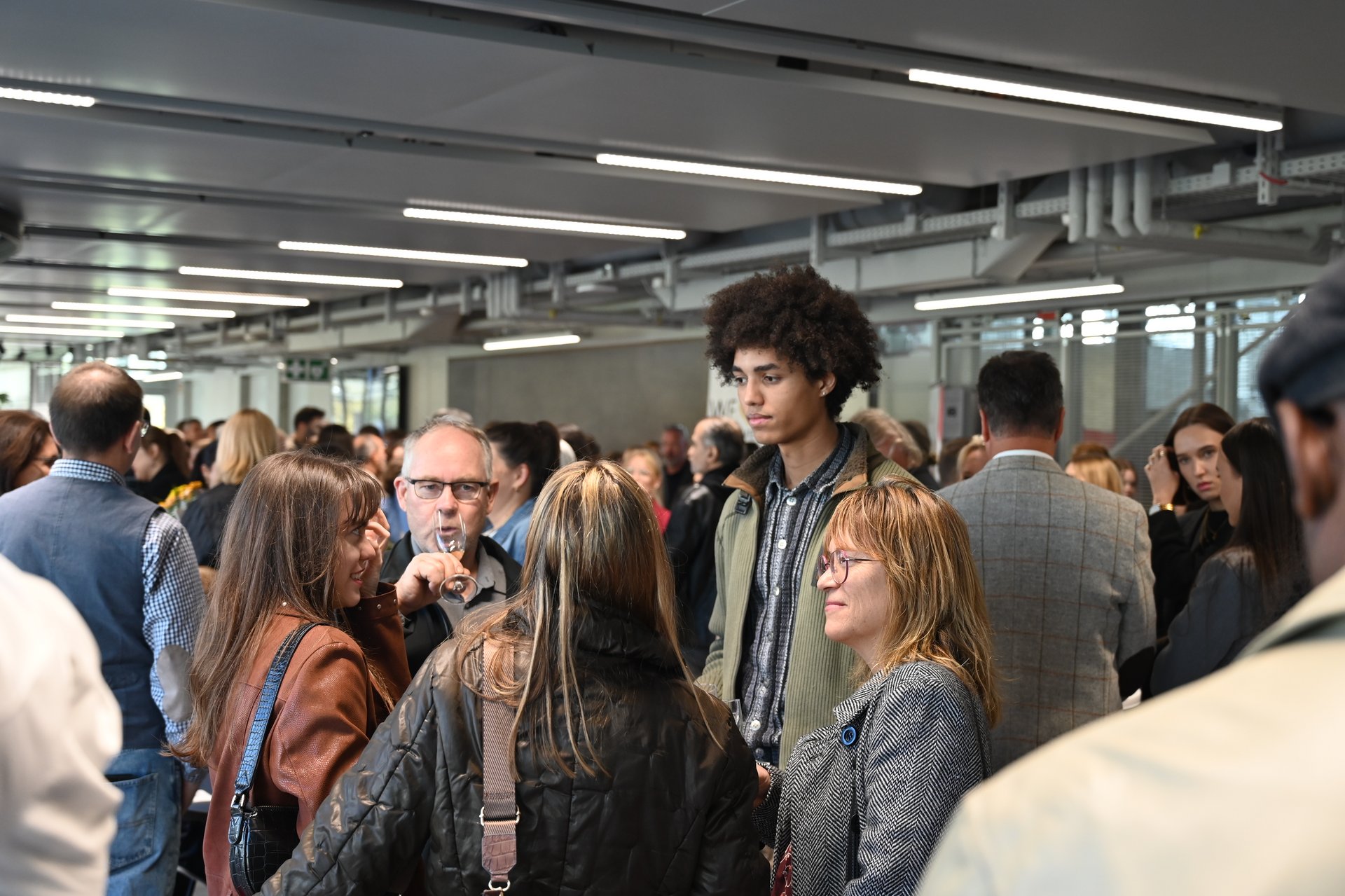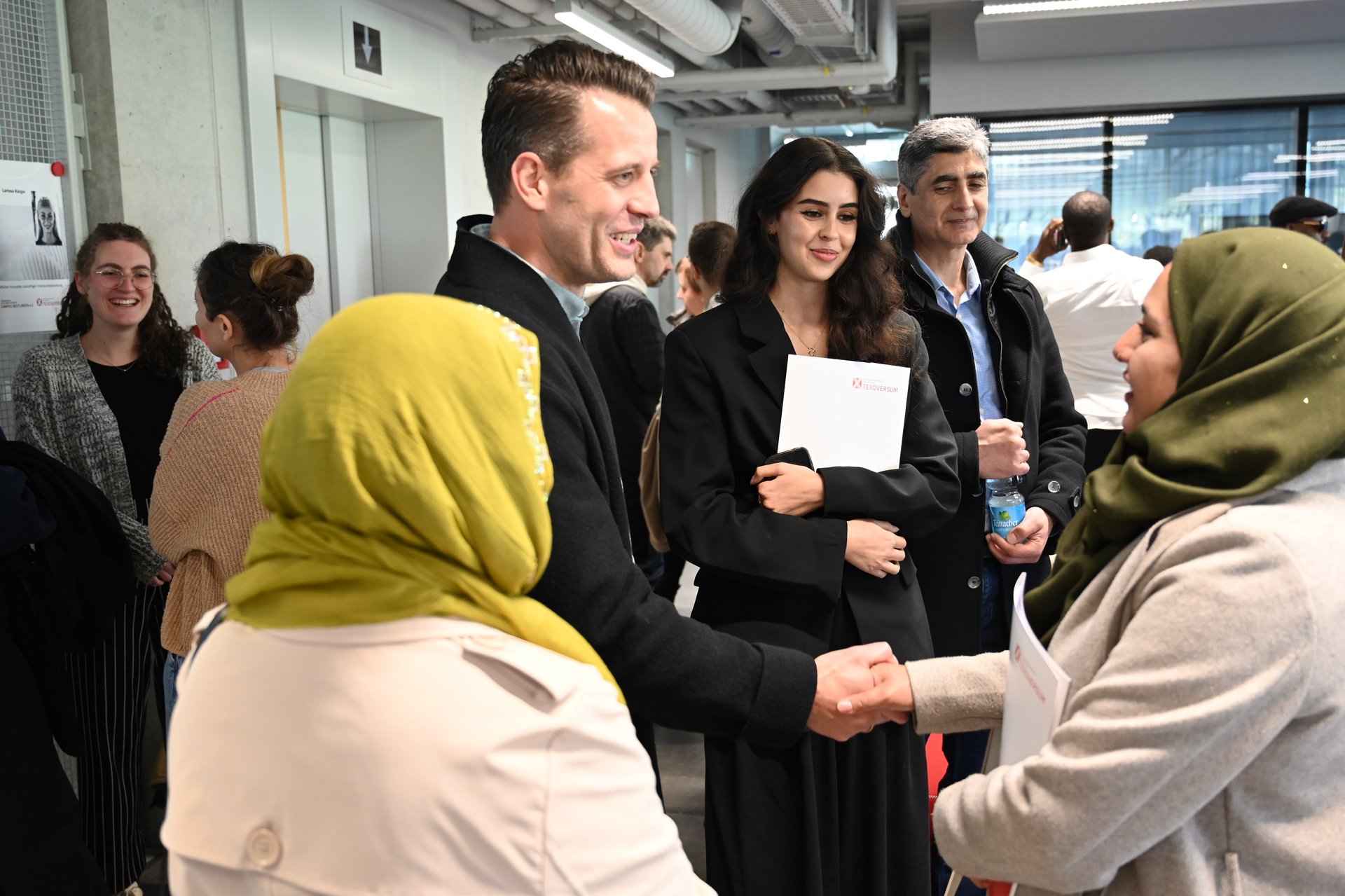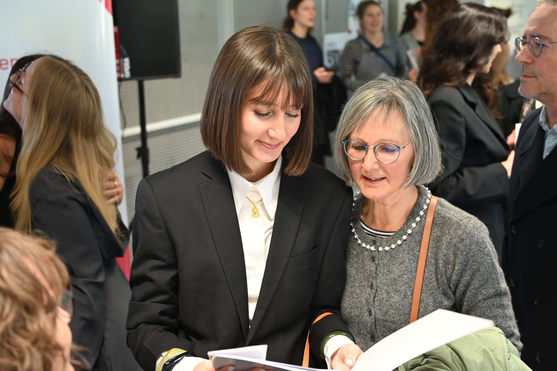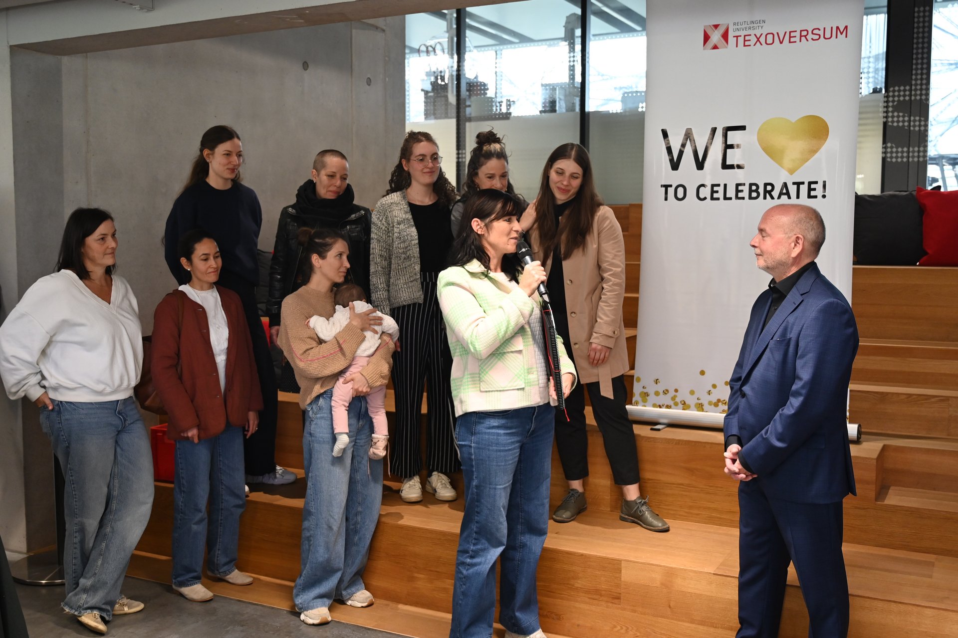 Im Foyer des TEXOVERSUM feierten Familien, Freunde, Fakultätsmitarbeitende sowie Professorinnen und Professoren gemeinsam mit den nun ehemaligen Studierenden diesen wichtigen Meilenstein.