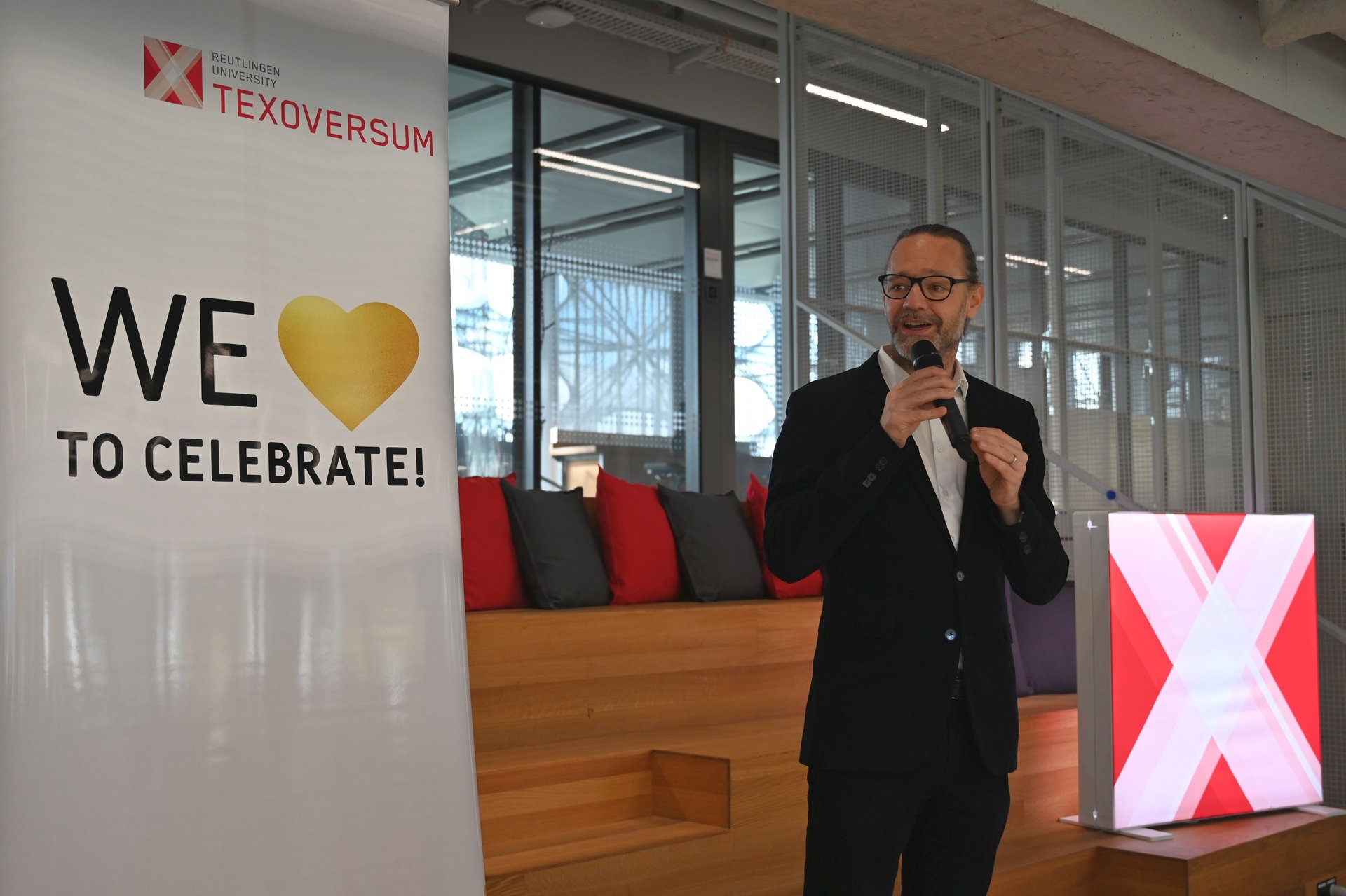 Er dankte den Absolventinnen und Absolventen für ihr Vertrauen und ermutigte sie: „Gehen Sie mit Zuversicht hinaus in die Welt. Sie ist nicht schwierig, sondern steckt voller Chancen. Das hier erworbene Rüstzeug befähigt Sie, frei nach Pippi Langstrumpf, sich die Welt zu gestalten, wie sie Ihnen gefällt.“ Mit einem augenzwinkernden Aufruf schloss er frei nach Franz Beckenbauer: „Jetzt geht’s raus und macht Textil!“